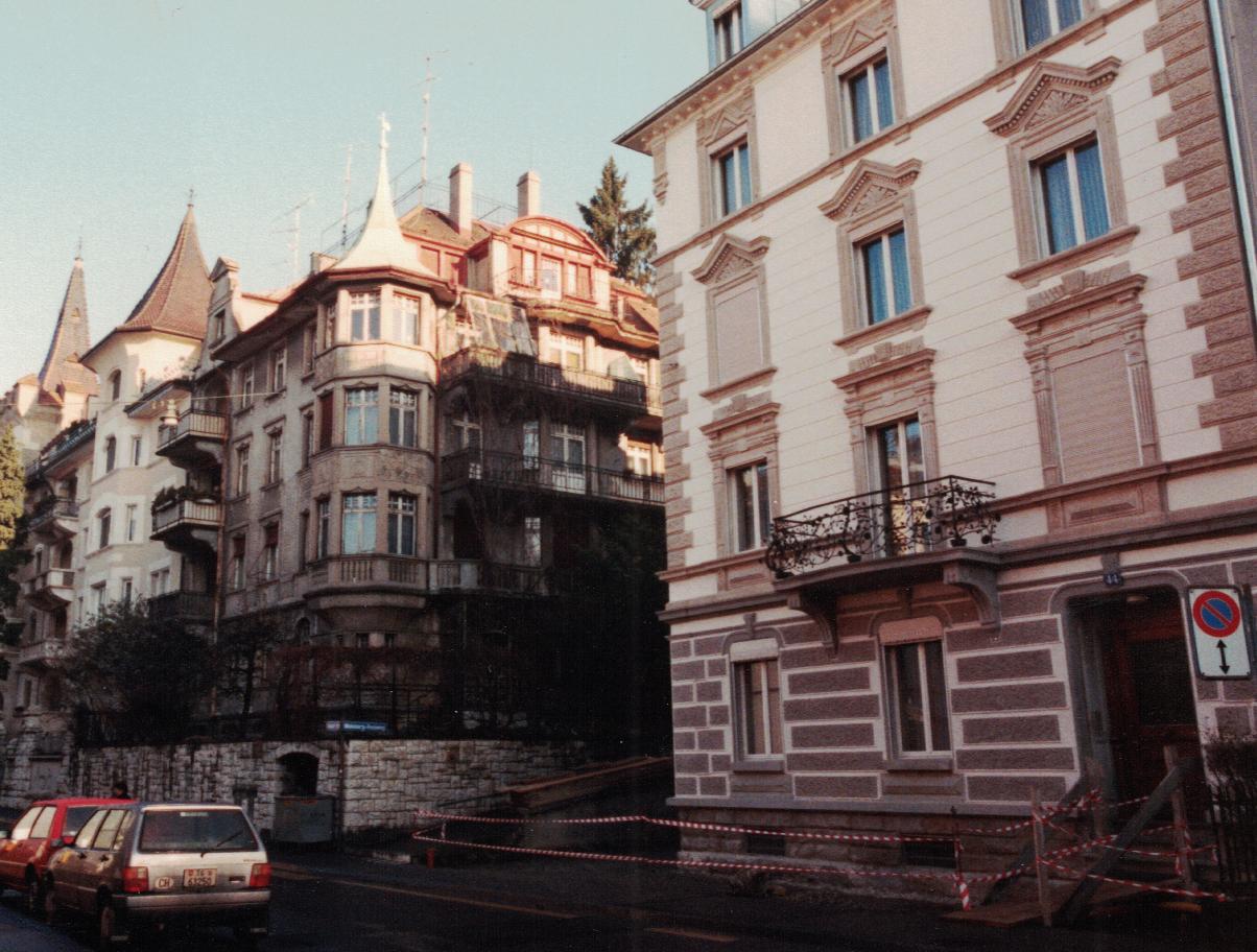 Life is pretty good. I'm not sleeping on Mike Monagans floor now. And after he returned from New Zealand and I was out on the street, I managed to find a place to stay. For those that know anything about Switzerland, you'll know that's a miracle. It was a combination of incredible luck, my boss's German, working for ETH and our Attack Secretary who knows everybody and can do anything. Of course the hotels are full. So at the moment I'm in a nice large room on the top (5th) floor in a old house (a mansion in North American terms) and share a bathroom and kitchen with four others on my floor. All American I think. I have only met two.